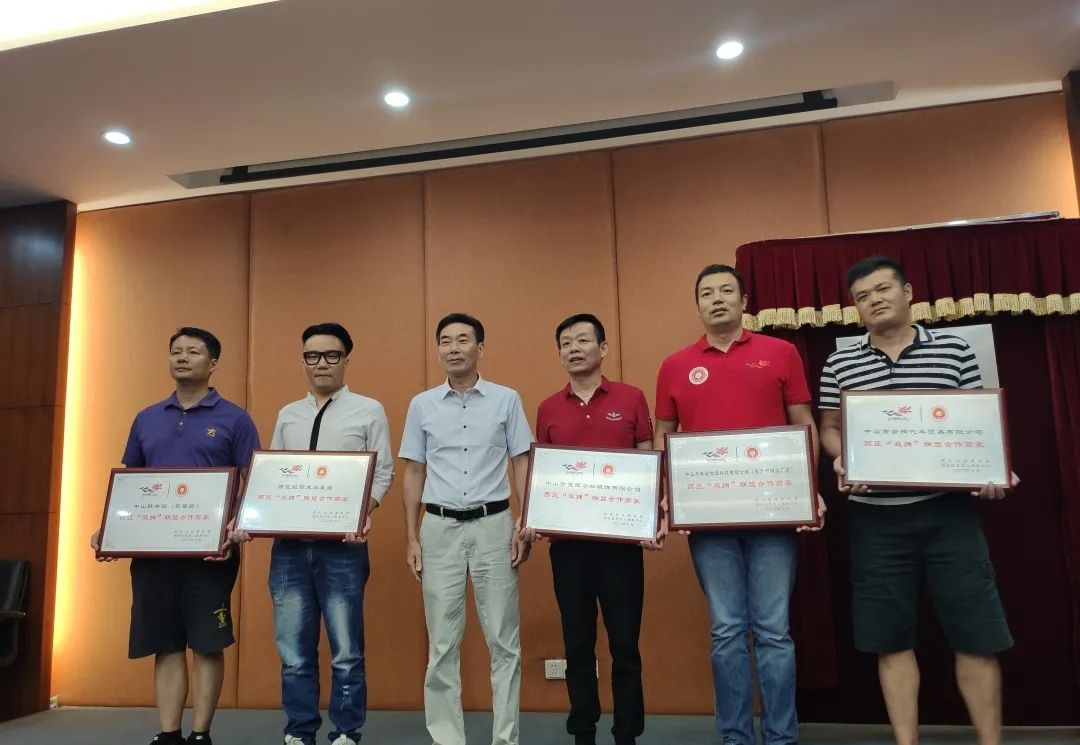 △領(lǐng)導(dǎo)和合作商家代表上臺揭牌,西區(qū)“雙擁”聯(lián)盟正式成立 會上,熊云峰分別為合作商家負責(zé)人頒授紀念牌匾。至此,中山市鎮(zhèn)區(qū)首個以退役軍人及其他優(yōu)撫對象為主要服務(wù)對象的組織正式成立。 △熊云峰委員向五家合作企業(yè)商家頒發(fā)紀念牌匾 據(jù)悉,為聯(lián)動社會力量,共同為轄區(qū)退役軍人獻愛心,西區(qū)發(fā)動轄區(qū)五家企業(yè)聯(lián)合成立“雙擁聯(lián)盟”,分別為轄區(qū)退役軍人定制專屬優(yōu)惠方案,凡符合條件的退役軍人憑證(軍官證、士兵證、退伍證等)消費即可享受相關(guān)優(yōu)惠。