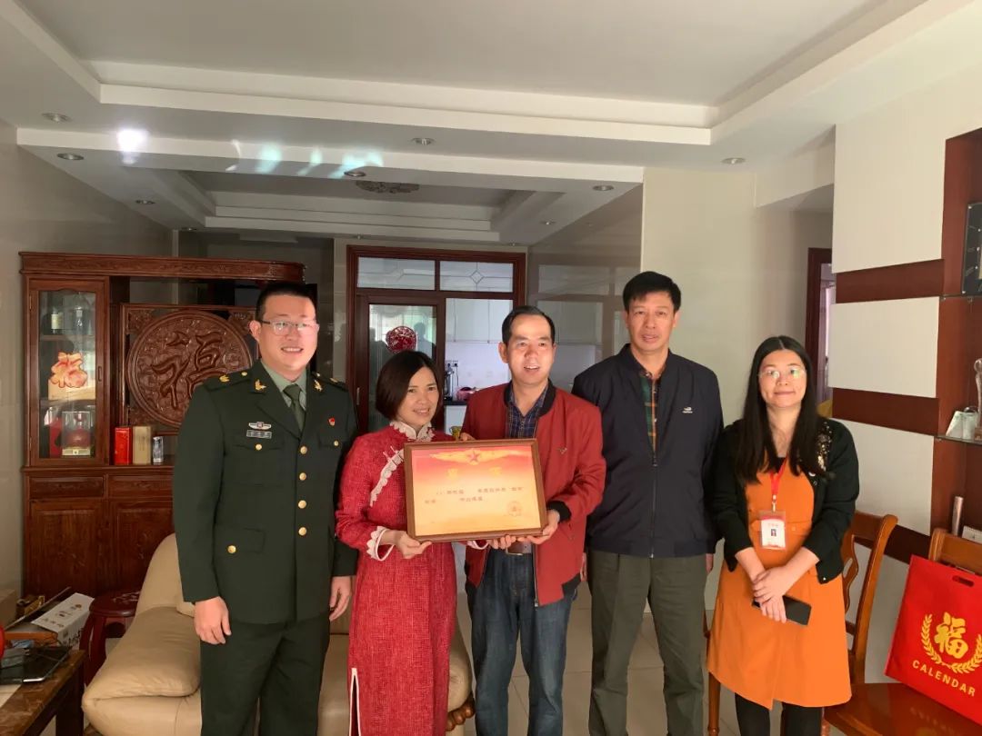 為黃權(quán)東家庭送上掛歷并懸掛光榮牌