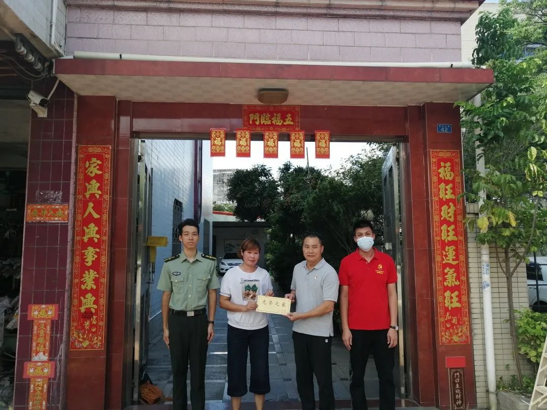 為進(jìn)一步鞏固和發(fā)展軍政軍民團(tuán)結(jié),弘揚(yáng)新時(shí)代擁軍優(yōu)屬的優(yōu)良傳統(tǒng),推進(jìn)軍人榮譽(yù)體系建設(shè),營(yíng)造關(guān)愛(ài)軍人的濃厚社會(huì)氛圍,7月15日上午,阜沙鎮(zhèn)武裝部、退役軍人服務(wù)中心聯(lián)合走訪今年入伍的6名新兵家屬,為其家庭懸掛“光榮之家”門(mén)牌,送上入伍電子相冊(cè),了解新兵在部隊(duì)的訓(xùn)練、學(xué)習(xí)和生活情況,增強(qiáng)軍屬家庭的榮譽(yù)感和自豪感,讓他們切實(shí)感受到黨和政府的關(guān)愛(ài)和溫暖。 在新兵周志偉家中,其父親周錦元自豪地說(shuō):“雖然非常舍不得志偉離開(kāi)我們,但是送他到部隊(duì)鍛煉,為國(guó)家作貢獻(xiàn),心里還是很高興的,也非常自豪。今天你們來(lái)給我家掛光榮牌、送相冊(cè),我們?nèi)倚睦锱?,非常感謝黨和政府對(duì)我們的關(guān)心?!?/p>一人參軍,全家光榮 一塊刻著“光榮之家”的小小牌匾 對(duì)軍屬家庭來(lái)說(shuō)卻是一份特殊的“禮物” 牌匾雖小