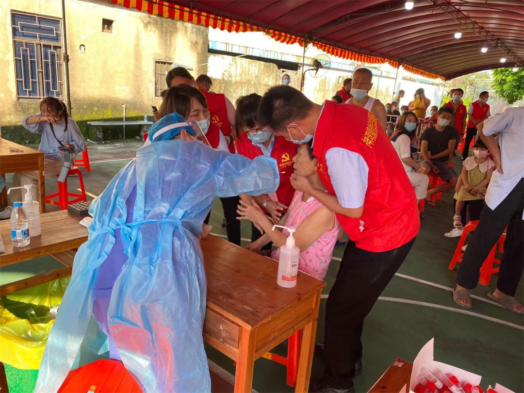 疫情就是命令,防控就是責(zé)任。神灣鎮(zhèn)上下聞令而動,黨員干部、醫(yī)護人員、村(社區(qū))工作人、志愿者快速投入戰(zhàn)斗中,共同織密織牢聯(lián)防聯(lián)控“防疫網(wǎng)”。 由于時間緊迫,有的醫(yī)務(wù)人員和各村(社區(qū))工作人員、駐村工作組整個上午連水都沒喝上幾口。為了節(jié)省時間,中午他們在接種點簡單吃個快餐,又開始新的戰(zhàn)斗。 居委會