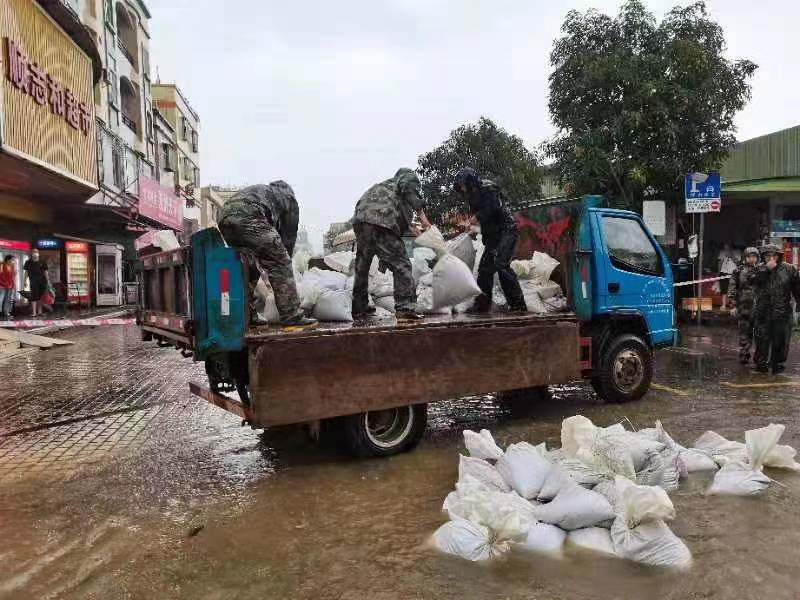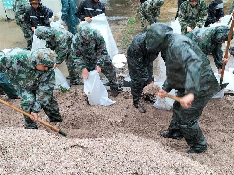 “我們已做好充分準(zhǔn)備,手電筒、救生衣、雨衣、膠鞋等防汛物資已準(zhǔn)備就緒,24小時(shí)防汛值班,隨時(shí)待命,確保防汛工作有序進(jìn)行?!蔽骞鹕轿溲b部相關(guān)工作人員呂兆彬介紹,上午9時(shí)許,南橋新村出現(xiàn)內(nèi)澇情況,村里所屬民兵已就近動(dòng)員,前往現(xiàn)場參與處置。 同時(shí),中山軍分區(qū)要求各鎮(zhèn)街民兵應(yīng)急分隊(duì)迅速收攏人員,積極參與本鎮(zhèn)街、村防汛救災(zāi)工作,在防汛搶險(xiǎn)一線打響“保衛(wèi)戰(zhàn)”,全力以赴保障人民群眾生命財(cái)產(chǎn)安全。中山軍分區(qū)相關(guān)負(fù)責(zé)人介紹:“前幾天,我們都已經(jīng)指導(dǎo)各鎮(zhèn)街武裝部對防汛裝備器材進(jìn)行了檢修,并結(jié)合民兵應(yīng)急分隊(duì)集中輪訓(xùn)開展了防汛應(yīng)急演練?!?/p>  ▲圖為神灣鎮(zhèn)民兵在裝沙袋,準(zhǔn)備堵住內(nèi)澇道路。(通訊員 吳容照 攝)