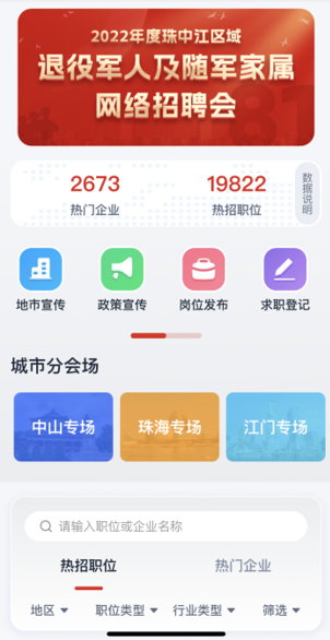 ▲掃碼進(jìn)入2022年度珠中江區(qū)域退役軍人及隨軍家屬網(wǎng)絡(luò)招聘會。
