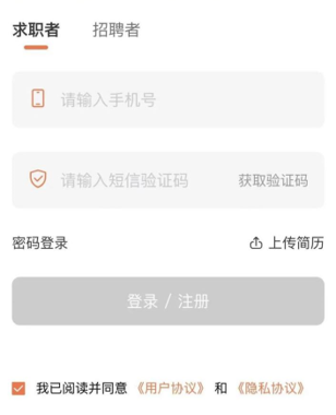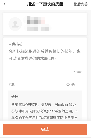 2、注冊賬號 未注冊登陸的求職者將自動跳轉(zhuǎn)到注冊頁面,完善相關(guān)信息后點(diǎn)擊【完成】按鈕完成注冊流程。