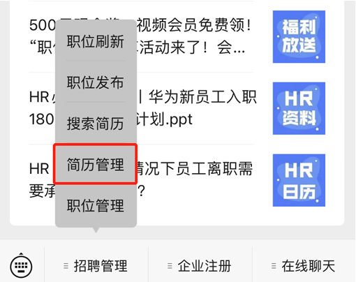 ▲發(fā)布職位流程 3、管理招聘 關(guān)注公眾號【國際人才網(wǎng)企業(yè)版】,在【招聘管理】菜單欄找到【簡歷管理】,即可查看主動應(yīng)聘的求職者,并可發(fā)起溝通或邀約面試。