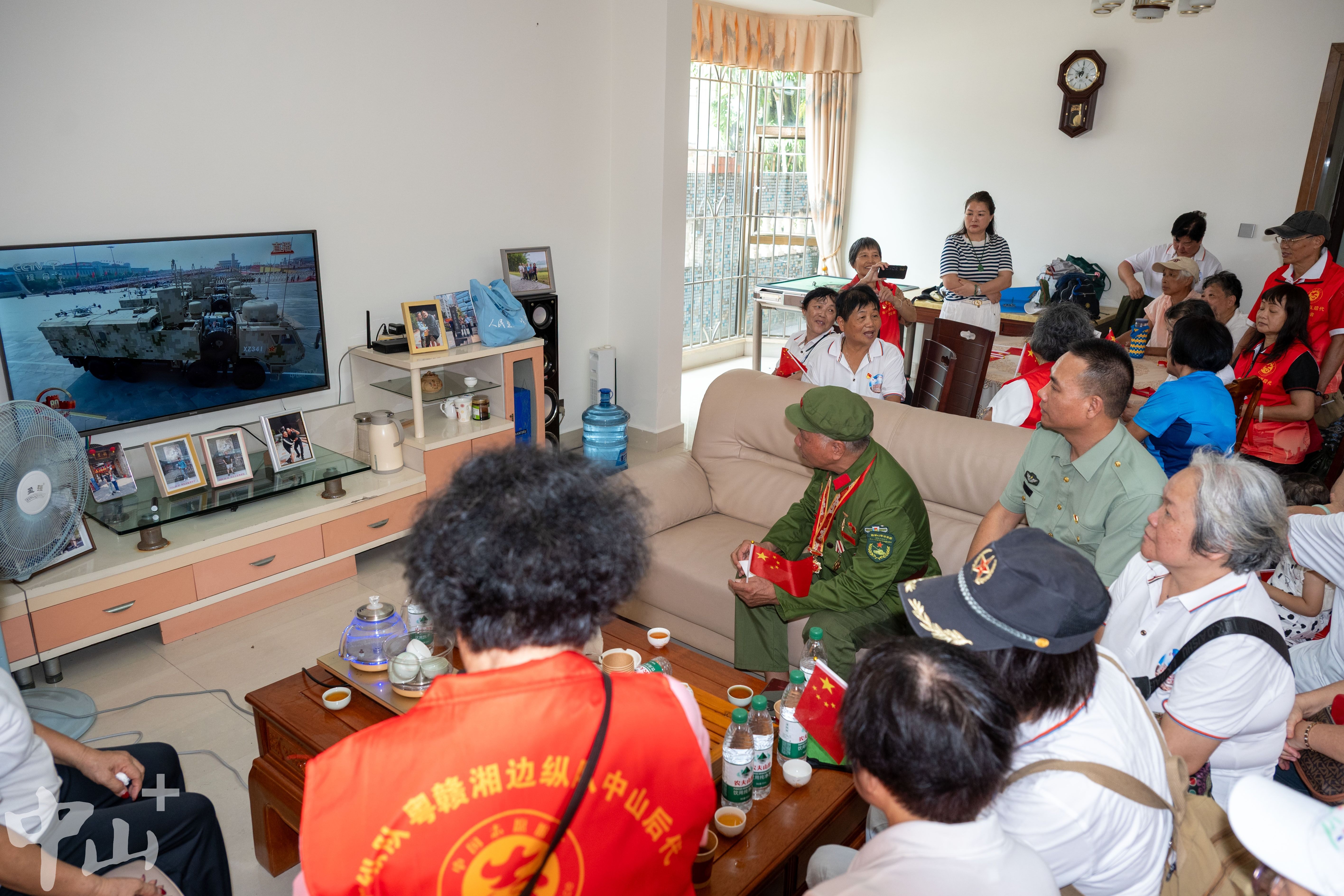 9月3日上午,廣東人民抗日游擊隊東江縱隊、粵贛湘邊縱隊中山后代和功勛老兵齊聚抗戰(zhàn)時期“廣東省革命老區(qū)村莊”——南朗街道白企村,共同觀看紀念中國人民抗日戰(zhàn)爭暨世界反法西斯戰(zhàn)爭勝利80周年大會直播盛況。他們紛紛表示,看到強大的祖國越來越繁榮,非常激動,也非常自豪。 9月3日上午,東江縱隊、粵贛湘邊縱隊中山后代和功勛老兵齊聚在一起,觀看閱兵盛典。見習記者 張景天 攝