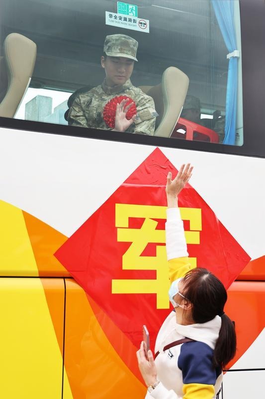 東區(qū)街道新兵潘子晨的母親鄭紅麗深情囑咐道:“兒行千里母擔(dān)憂。你們此行遠(yuǎn)離家鄉(xiāng)和親人,一定要銘記父老鄉(xiāng)親對(duì)你們的殷殷囑托,無論是在邊疆巡邏、高山上練兵,還是為祖國(guó)站崗,希望你們?cè)诓筷?duì)里傳承中山人敢為人先的闖勁,沖鋒在前,勇?lián)笕?,努力為中山人民?zhēng)光添彩!我們將為你們營(yíng)造一個(gè)穩(wěn)固的‘大后方’,時(shí)刻支持你們。” 滿載著新兵的客車徐徐駛離。記者 文波 攝