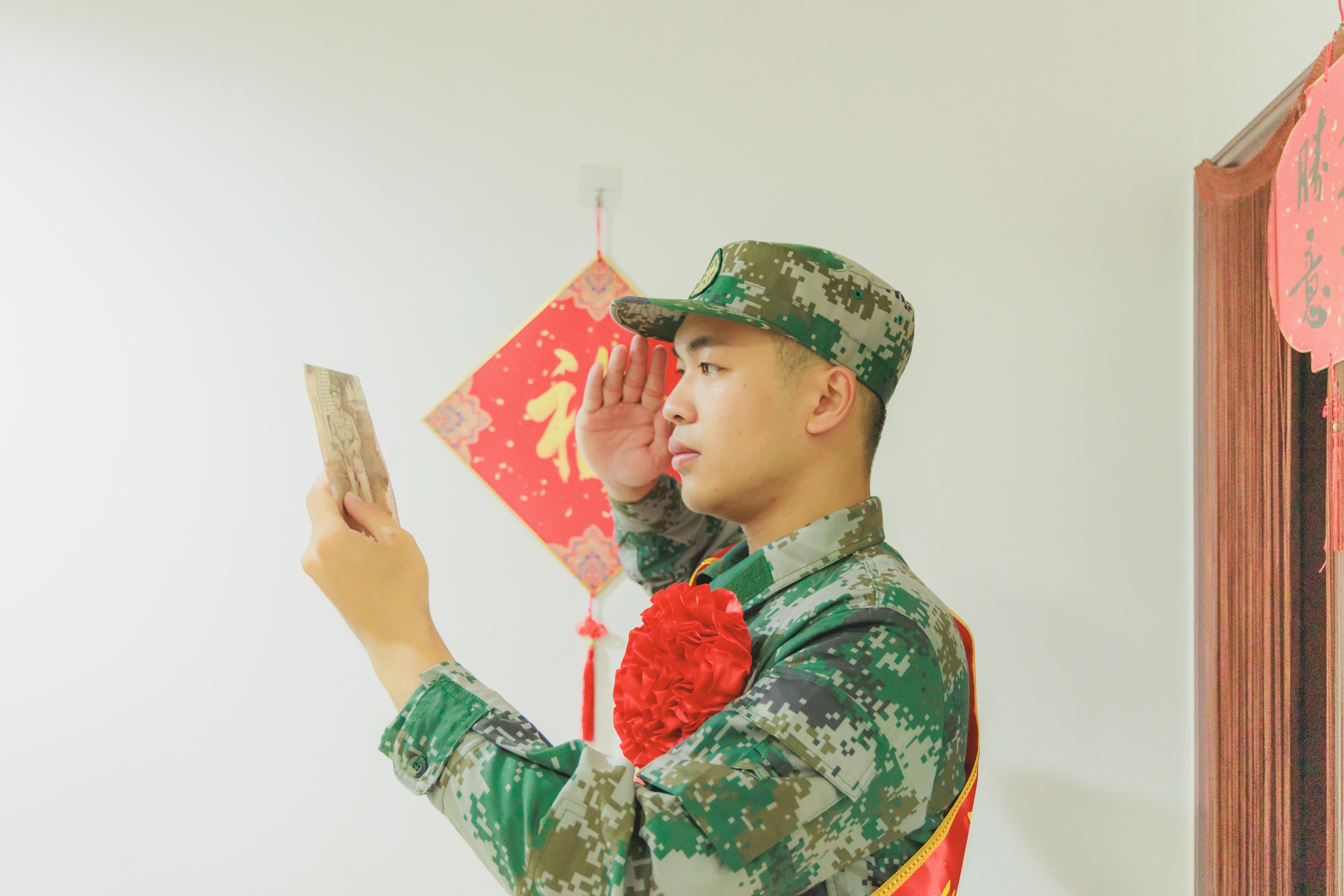 楊尚霖向外公照片敬軍禮(外公已經(jīng)過世)。馬衛(wèi)星 攝