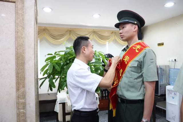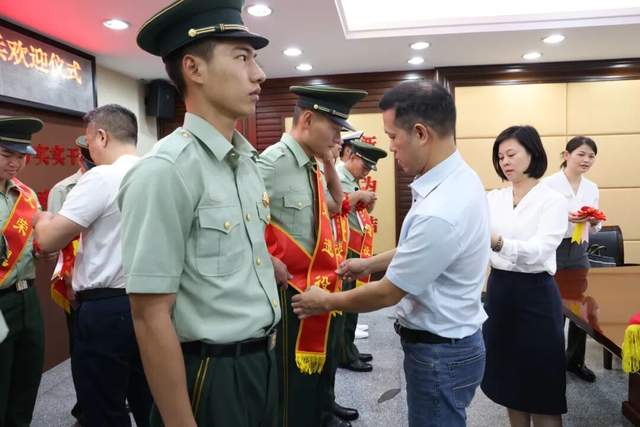 儀式現(xiàn)場(chǎng),街道領(lǐng)導(dǎo)為退役士兵逐一佩戴象征榮譽(yù)的大紅花,致敬他們?yōu)閲?guó)防事業(yè)作出的貢獻(xiàn)。