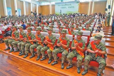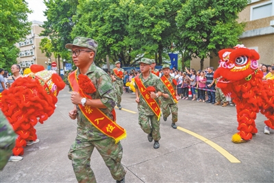 身著迷彩服,佩戴光榮花,一張張青春臉龐上滿是憧憬之情。金秋九月,中山又一批有志青年背上行囊,意氣風(fēng)發(fā)奔赴軍營。 今年下半年,全市共有3000多名適齡青年報名應(yīng)征,經(jīng)過體檢、政治考核、役前教育等層層選拔,共征集了300多名男兵,在讀大學(xué)生征集比例、大學(xué)畢業(yè)生征集比例再創(chuàng)歷史新高,圓滿完成了上級賦予的任務(wù)。 “希望你們不管在何處服役,是哪個兵種,都銘記父老鄉(xiāng)親的殷殷囑托,在部隊大力弘揚(yáng)中山‘敢想敢闖、敢為人先’的精神,展示出‘中山兵’的良好精神風(fēng)貌,沖鋒在前、勇?lián)笕?、奮斗奉獻(xiàn),努力為中山增光添彩。祝新戰(zhàn)友們一路順風(fēng),刻苦訓(xùn)練,能打勝仗,捷報頻傳!”在出席中山2023年下半年新兵歡送儀式時,中山市征兵工作領(lǐng)導(dǎo)小組副組長、中山軍分區(qū)大校司令員李云濤鄭重地說。 來自三鄉(xiāng)鎮(zhèn)的新兵代表馮林研究生畢業(yè)于青島農(nóng)業(yè)大學(xué),他鄭重承諾:“到部隊后我們一定牢記使命,安心服役、刻苦訓(xùn)練、嚴(yán)守紀(jì)律、積極進(jìn)取,為祖國和平安寧扛好槍、站好崗,不辜負(fù)國家和家鄉(xiāng)人民的期望!” 敲鑼打鼓,列隊歡迎。一場歡送儀式,就是一次生動的國防教育。歡送儀式上,除了以東鳳鎮(zhèn)新兵張學(xué)培家庭“三代從軍”事跡為背景創(chuàng)作的原創(chuàng)詩歌朗誦《致敬夢想的接力》、男聲四重唱《強(qiáng)軍戰(zhàn)歌》等文藝表演,新兵還展示了軍體拳,動作干凈利落整齊,儼然已有軍人的模樣?,F(xiàn)場,省級非物質(zhì)文化遺產(chǎn)起灣金龍展演也來助陣,只見金龍起舞、鑼鼓喧天,熱鬧非凡。 兒行千里母擔(dān)憂,歡送現(xiàn)場,不少家長熱淚盈眶,拿起手機(jī)記錄著孩子入伍的珍貴畫面,送兵車緩緩啟動,家長們的目光卻始終不肯轉(zhuǎn)移。一路跟隨,久久不肯離去…… 登上大巴車,新兵們揮一揮手:“再見,中山!軍營,我來啦!” 記者 黃藝杰 張倩 通訊員 黃嘉裕 圖編 文智誠 ◆編輯:龍慧◆二審:蘇鵬蘊(yùn)◆三審:周亞平 |