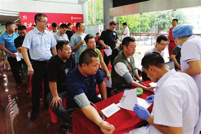 我市退役軍人踴躍報(bào)名參加無(wú)償獻(xiàn)血活動(dòng),大家正在接受獻(xiàn)血前血壓測(cè)量。記者 王云 攝