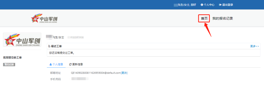 圖4 03 登錄信息 注冊(cè)成功后自動(dòng)跳轉(zhuǎn)至登錄界面,填寫(xiě)相應(yīng)信息后登錄賬號(hào),進(jìn)入個(gè)人中心首頁(yè),將系統(tǒng)默認(rèn)郵箱更改為個(gè)人常用郵箱,方便大賽執(zhí)委會(huì)通知發(fā)送。如圖5-6所示: