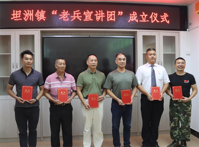 7月26日,中山市坦洲鎮(zhèn)成立全市鎮(zhèn)街首個“老兵宣講團”。中山市退役軍人事務(wù)局、中山市退役軍人服務(wù)中心,坦洲鎮(zhèn)公共服務(wù)辦公室、退役軍人服務(wù)中心等單位相關(guān)負責(zé)人,坦洲鎮(zhèn)“老兵宣講團”成員等出席成立儀式。 成立儀式現(xiàn)場,坦洲鎮(zhèn)退役軍人服務(wù)中心負責(zé)人簡要介紹了“老兵宣講團”成立的目的、任務(wù)及宣講團成員的基本情況。相關(guān)領(lǐng)導(dǎo)為“老兵宣講團”授旗,并頒發(fā)聘用證書。  ▲坦洲鎮(zhèn)老兵宣講團成員獲頒聘書。