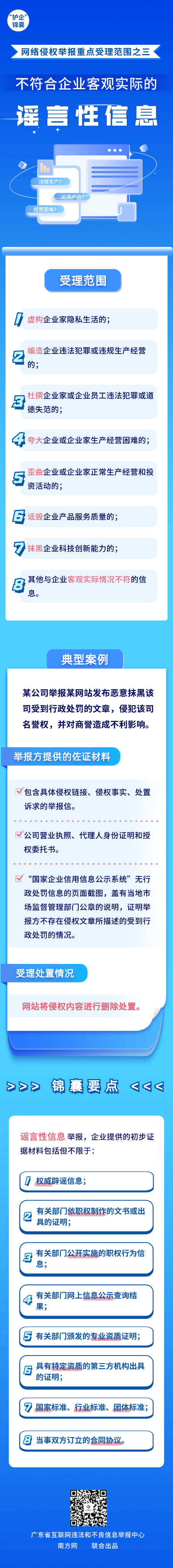 為有效助力企業(yè)維護(hù)自身網(wǎng)絡(luò)合法權(quán)益,廣東省互聯(lián)網(wǎng)違法和不良信息舉報(bào)中心精心準(zhǔn)備了“護(hù)企”錦囊,結(jié)合案例帶大家了解涉企網(wǎng)絡(luò)侵權(quán)信息的重點(diǎn)受理范圍,今天推出重點(diǎn)受理范圍之三——不符合企業(yè)客觀實(shí)際的謠言性信息。