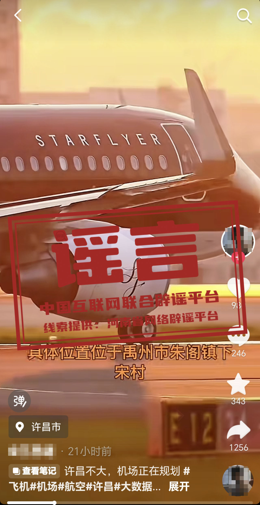 謠 言 河南許昌已明確通用機場的選址和投資金額?