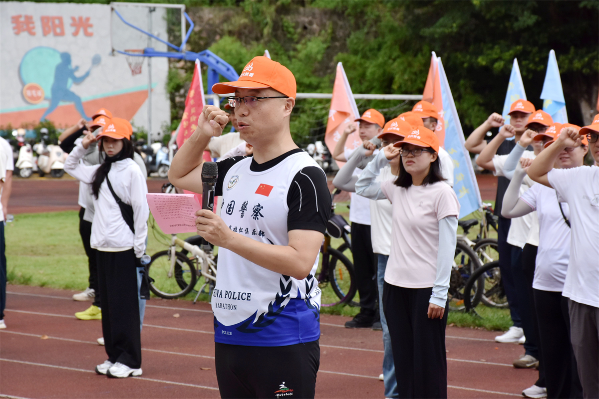 本活動分為三個流程:首先,由阜沙中學(xué)學(xué)生代表宣讀禁毒倡議書。擲地有聲的禁毒倡議,聲聲入耳的禁毒理念,鞭策著廣大群眾始終銘記銷煙歷史,傳承禁毒使命。緊接著,鎮(zhèn)領(lǐng)導(dǎo)為熱心企業(yè)、單位授予牌匾,感謝社會各界力量參與禁毒工作,為阜沙禁毒貢獻(xiàn)自己的力量。最后,張濤代表鎮(zhèn)黨委政府致辭。他強(qiáng)調(diào),毒品預(yù)防教育在禁毒工作中起重要作用,要始終堅(jiān)持預(yù)防為主,將“不能、不敢、不愿吸販毒”的無毒理念扎根人民群眾心中,從源頭、從思想上根治毒品問題。他指出,禁毒工作是一場馬拉松,希望大家燃放激情,保持耐力,積極投身禁毒工作,帶領(lǐng)廣大人民群眾共同抵制毒品,建設(shè)和諧穩(wěn)定、綠美新阜沙。隨后,張濤帶領(lǐng)所有人員宣誓,一聲聲鏗鏘有力的誓詞,讓禁絕毒品的使命初心永銘心中,讓腳下的步伐更加堅(jiān)定有力。伴隨著出發(fā)信號響起,騎行隊(duì)伍以車輪為畫筆,在夏日畫卷中勾勒出“健康人生,綠色無毒”的亮麗底色。